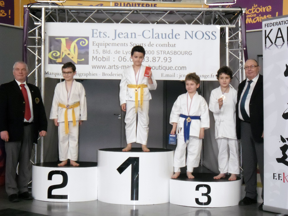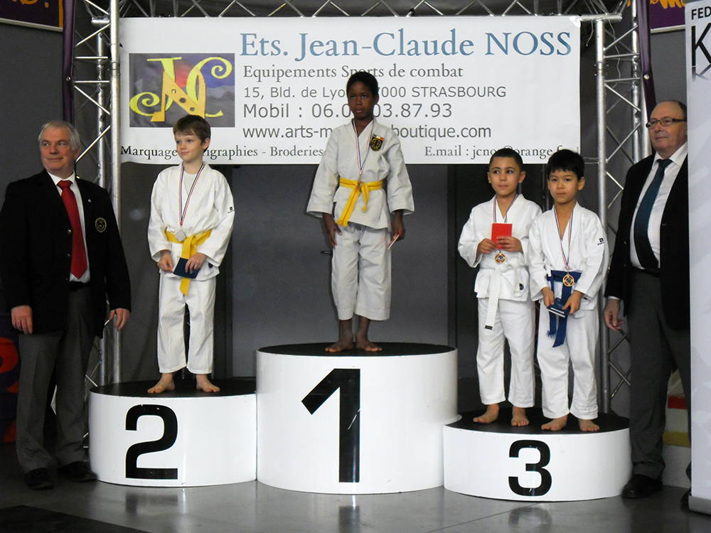 Dylan Radulovic en pupilles – de 25kg, Igor Rummelhart en poussins – de 30kg,  mais surtout Thomas Chamois qui finit 5ème sur 28 en pupilles – 30 kg , après 5 combats dont 3 victoires !!