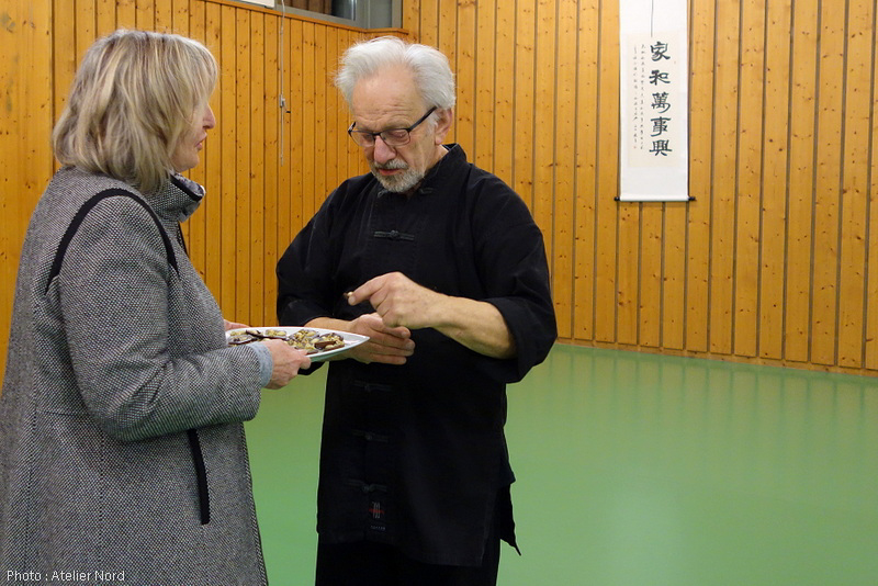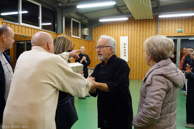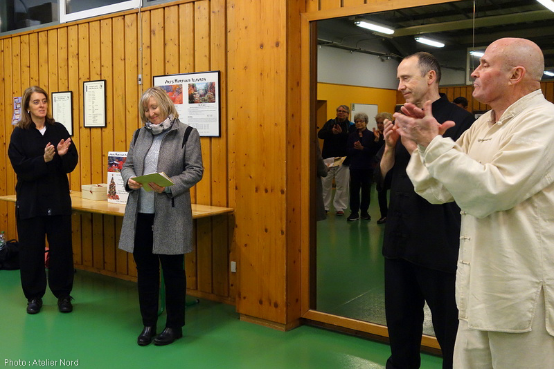 M. Schoenig président du club, ici en compagnie des instructeurs de Tai Chi / Qi Gong et au nom de tous les membres, remet l’ensemble des dons à Mme Gindre, responsable de la section Caritas du secteur d’Illfurth.