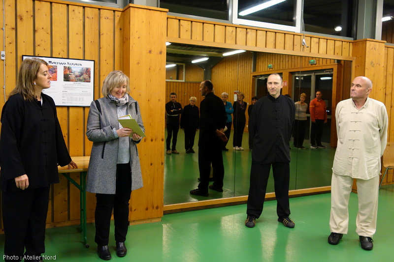 M. Schoenig président du club, ici en compagnie des instructeurs de Tai Chi / Qi Gong et au nom de tous les membres, remet l’ensemble des dons à Mme Gindre, responsable de la section Caritas du secteur d’Illfurth.