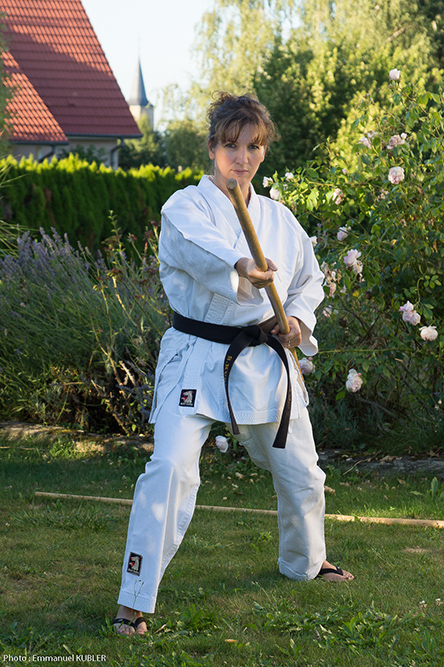 Pratiquante complète, elle aime compléter sa pratique du Karaté par le Kobudo (armes anciennes) et aime également les exercices complémentaires au sol.