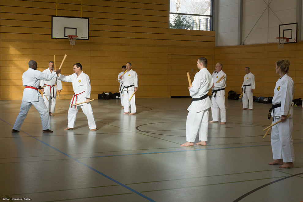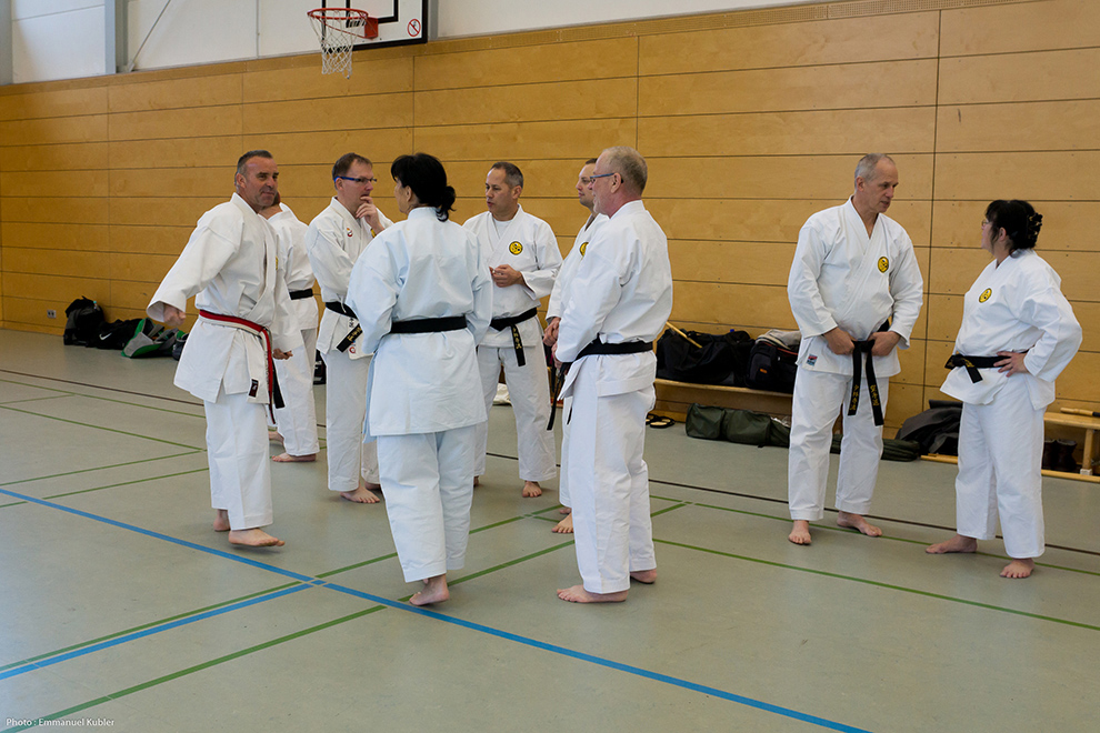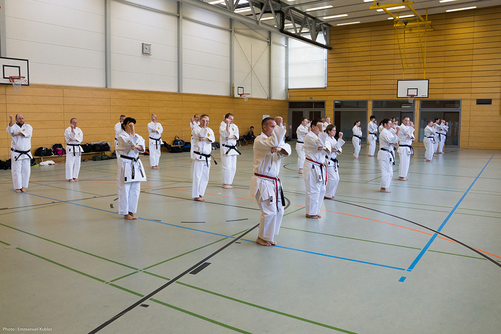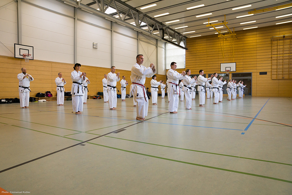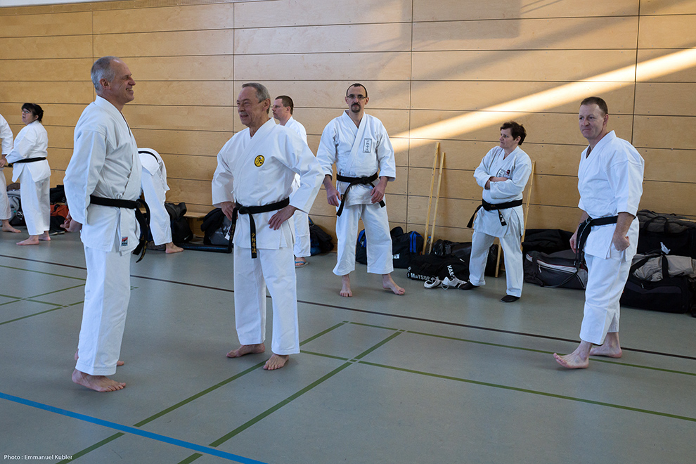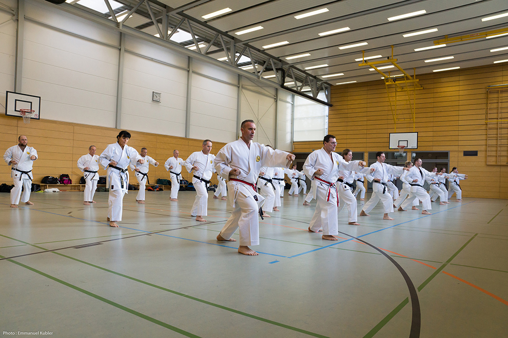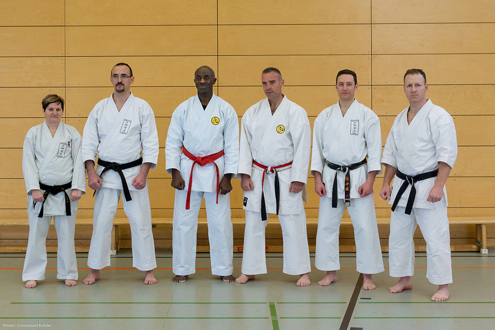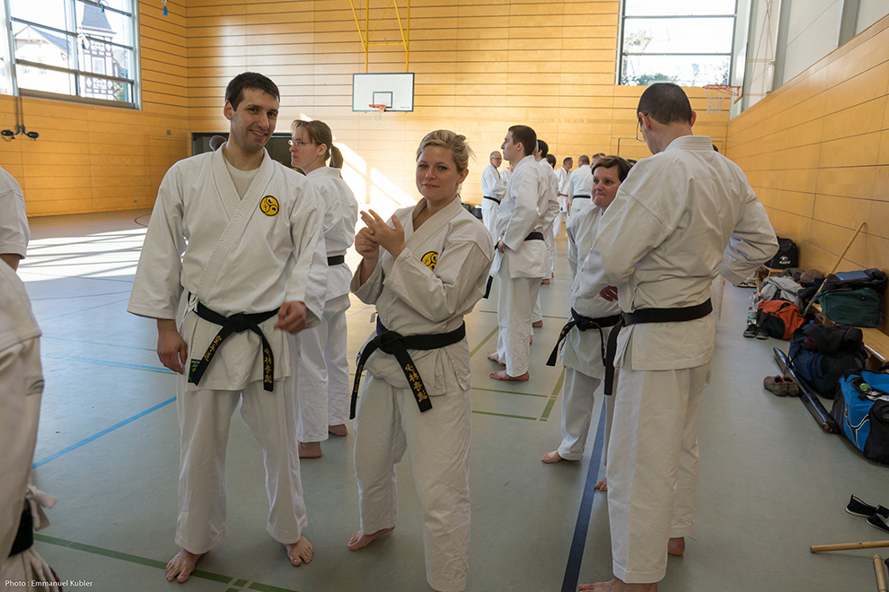 Le stage a réuni 36 Ceintures Noires venues d’Allemagne, de France et même de Grèce ! En effet, Sensei Dimitris SORKOS, 6e Dan, nous a fait l’honneur de sa présence.