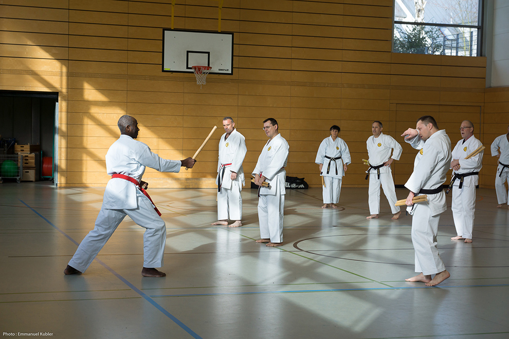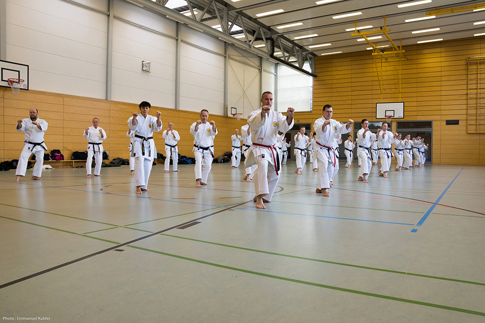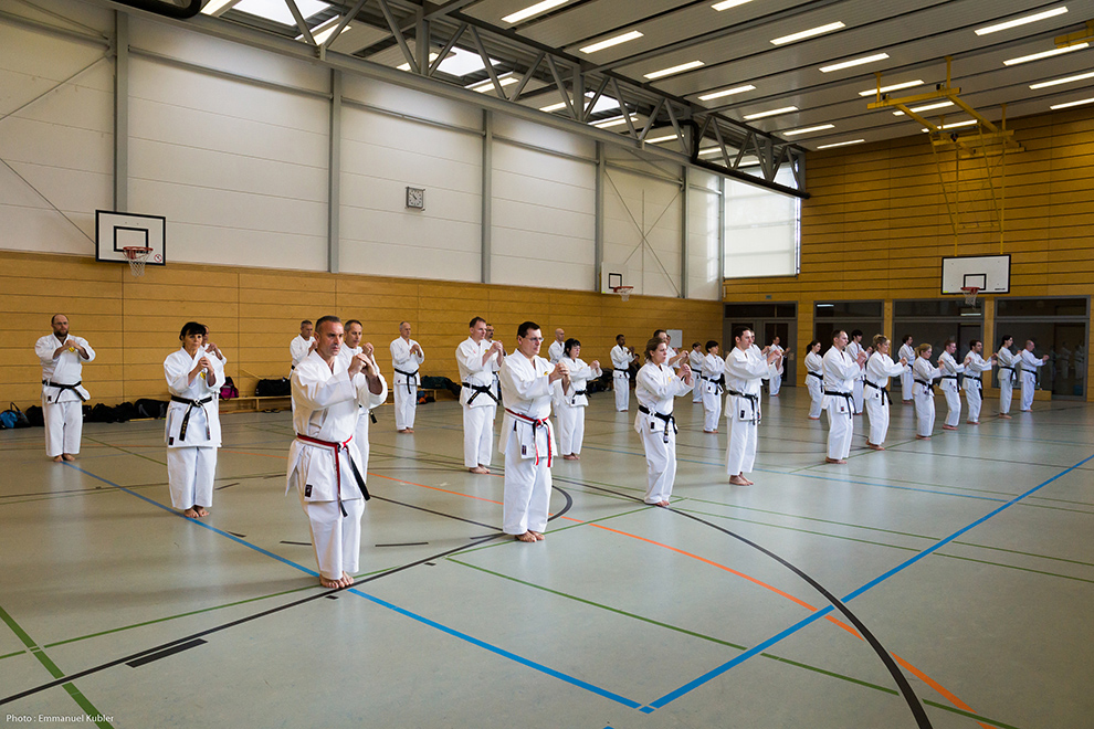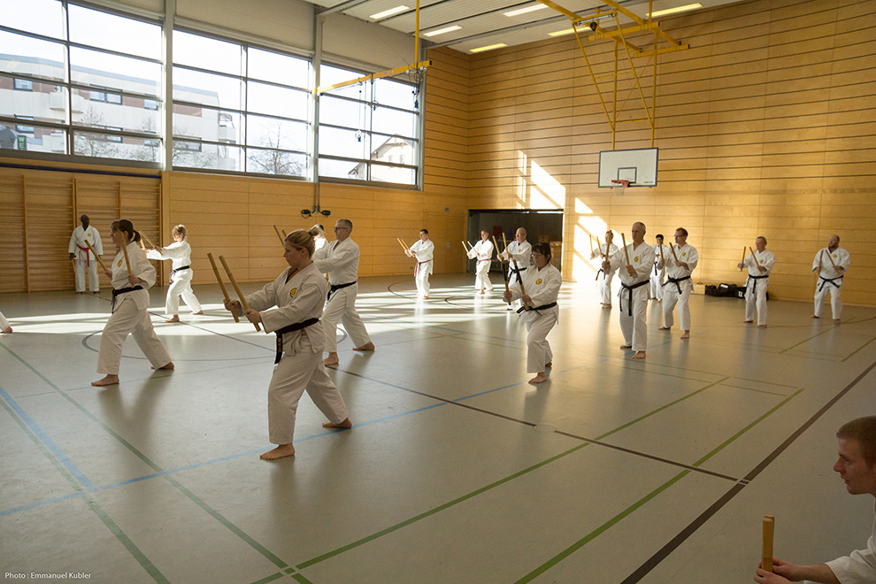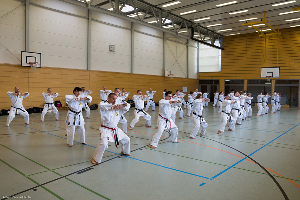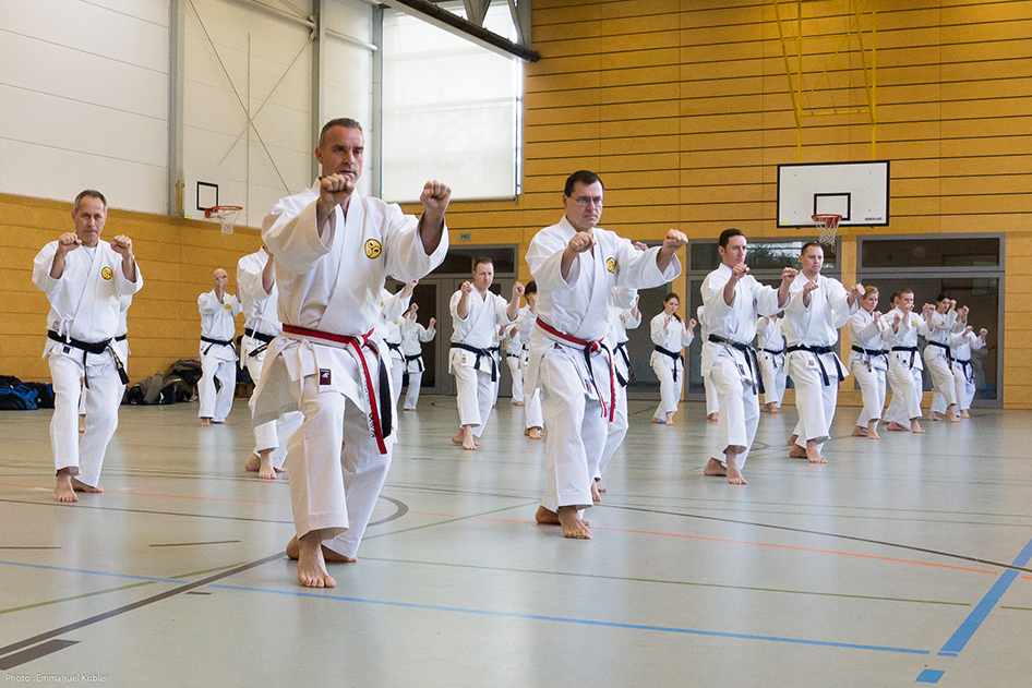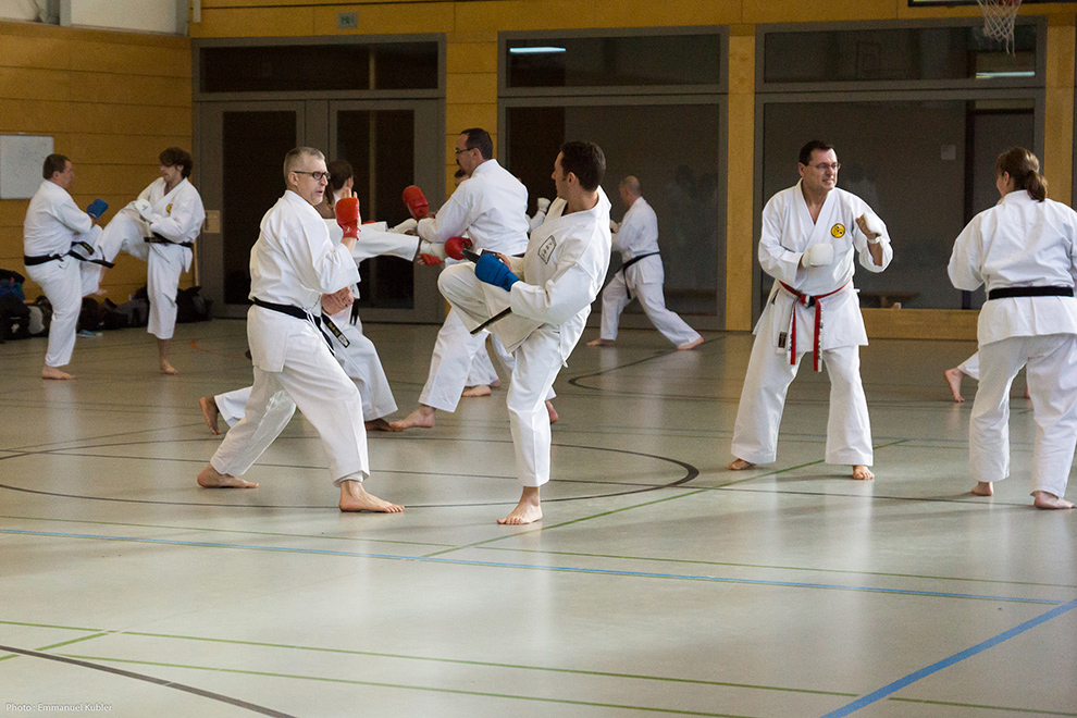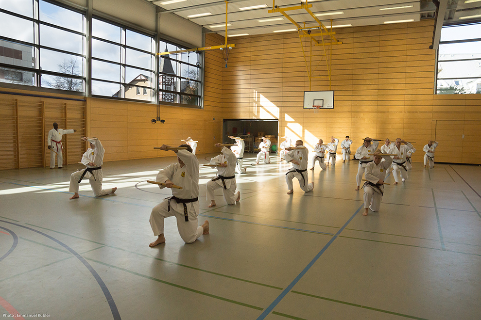 Le stage a réuni 36 Ceintures Noires venues d’Allemagne, de France et même de Grèce ! En effet, Sensei Dimitris SORKOS, 6e Dan, nous a fait l’honneur de sa présence.