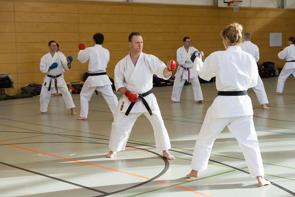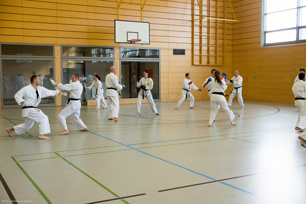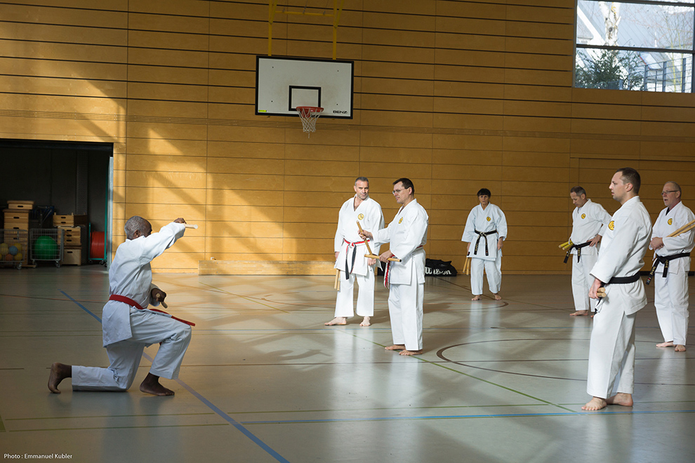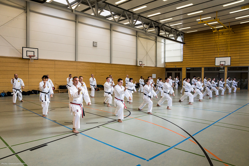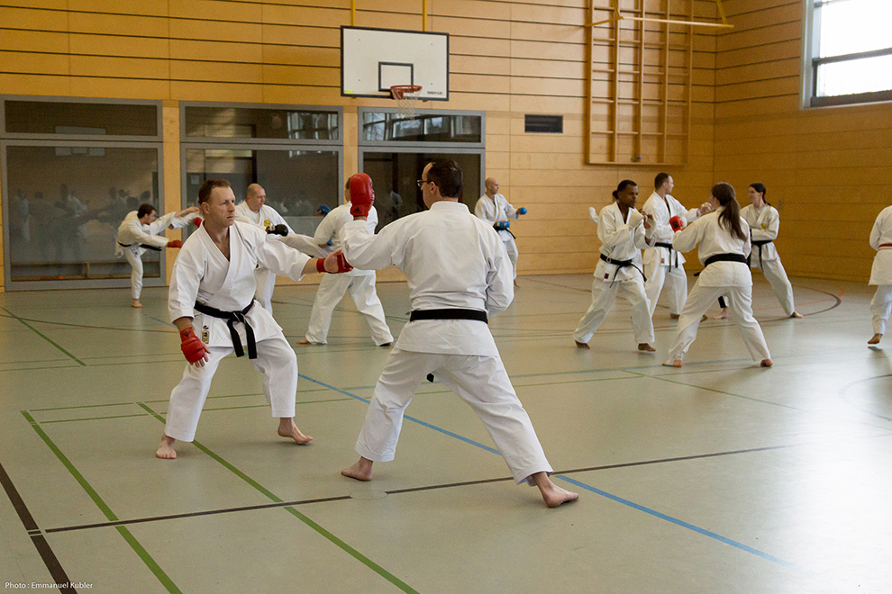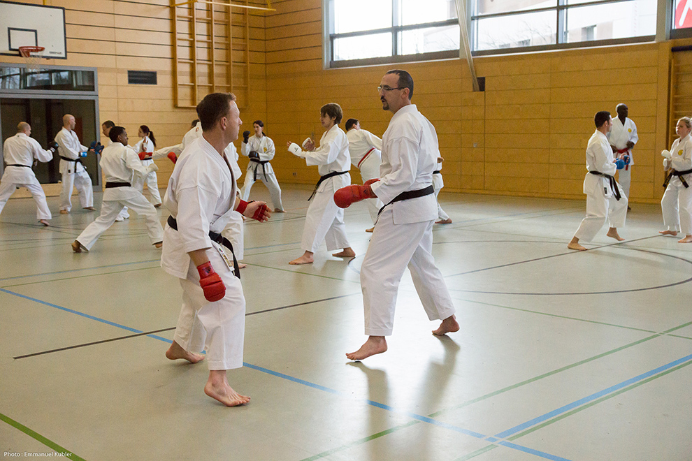 Après un court briefing dispensé par Sensei Axel Roth, nous nous sommes rendus dans la salle de sport d’un collège proche.