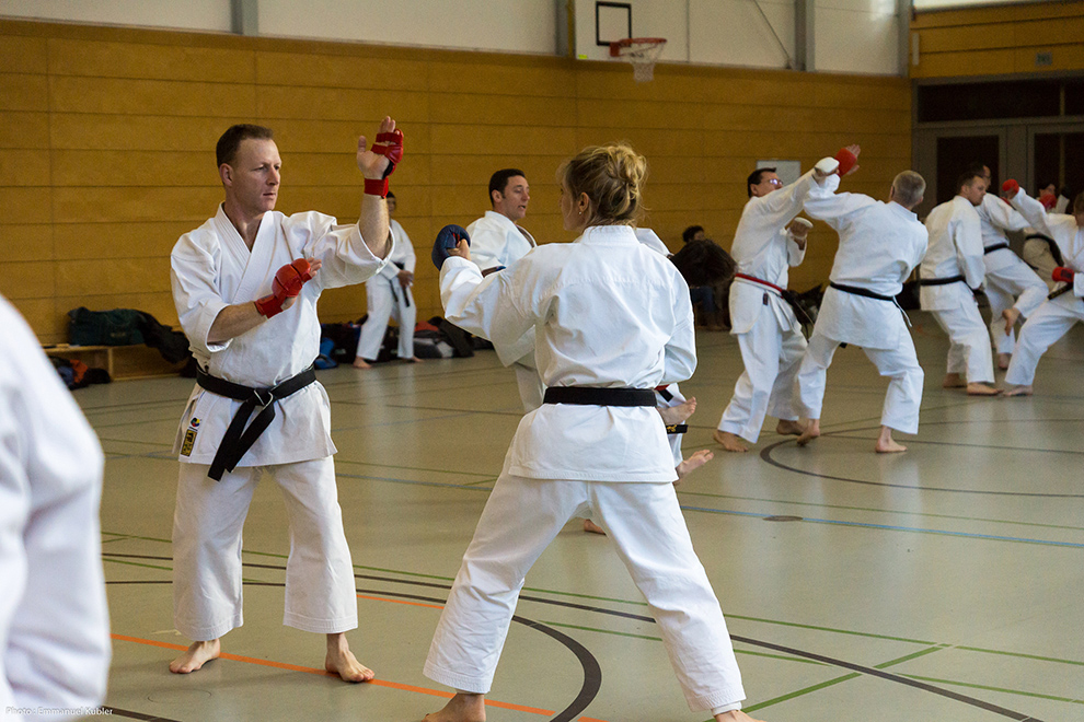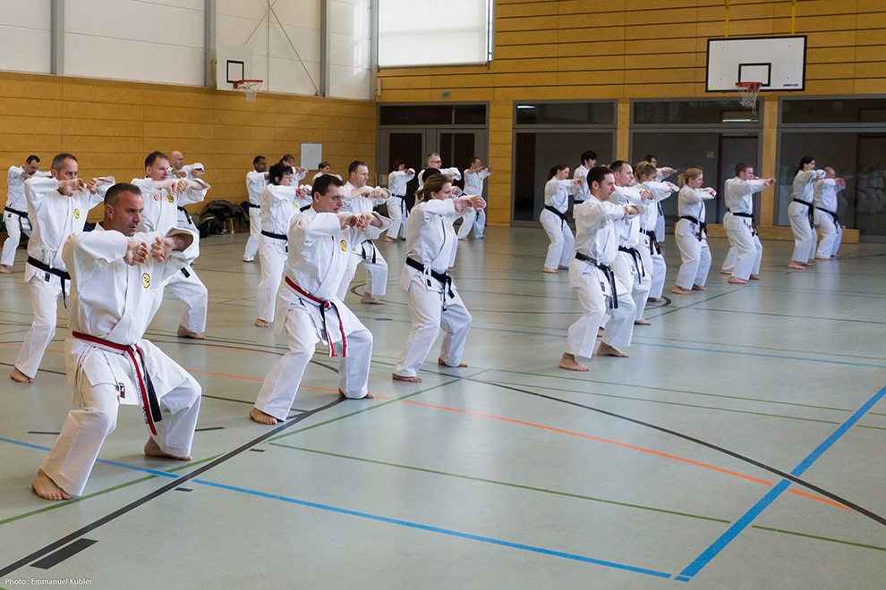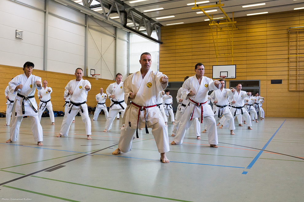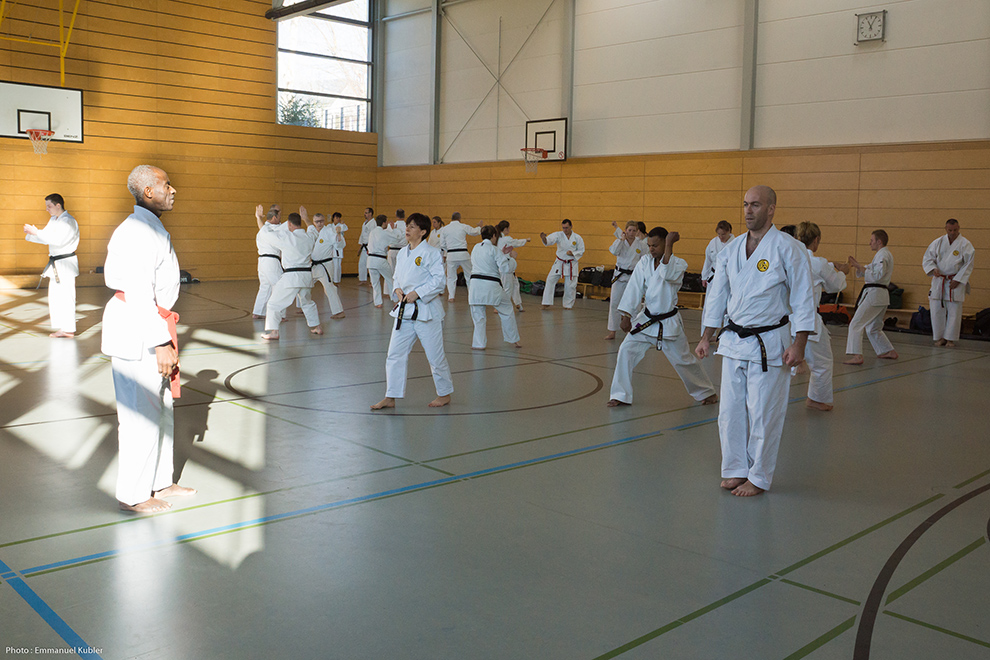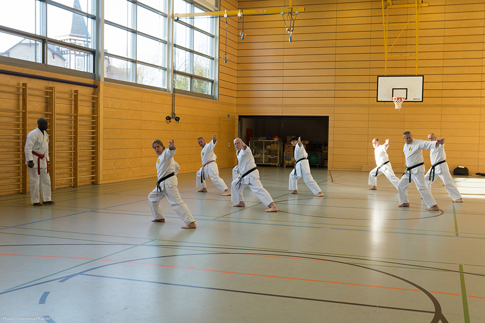 Après l’échauffement, nous avons bien entendu commencé par un Kihon. Puis Shihan Marsh a tenu à nous faire exécuter nos katas afin d’apporter les éventuelles corrections et pour harmoniser la pratique entre les dojos.