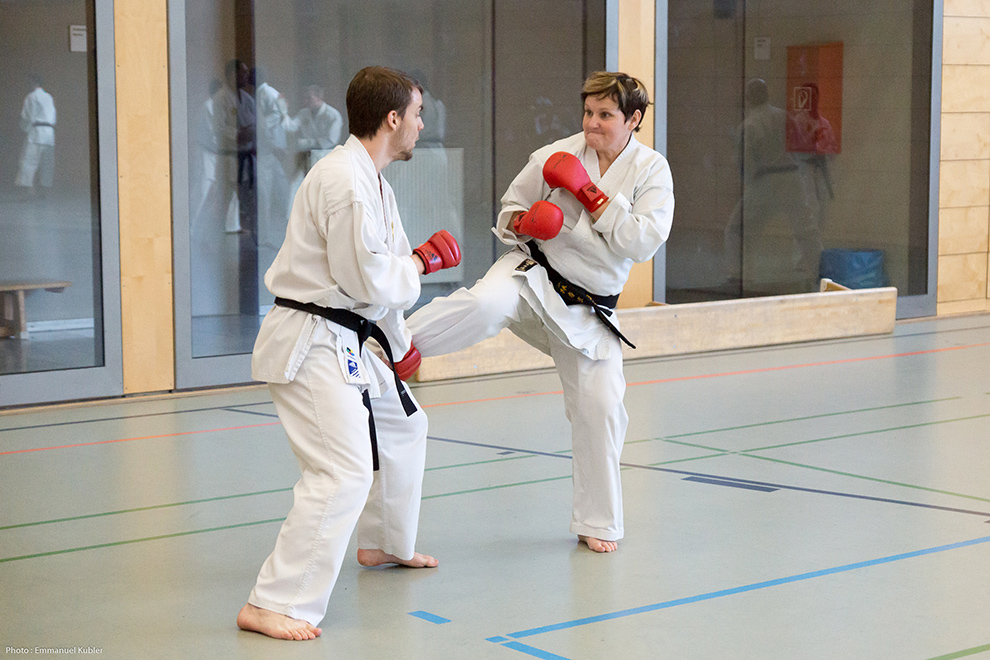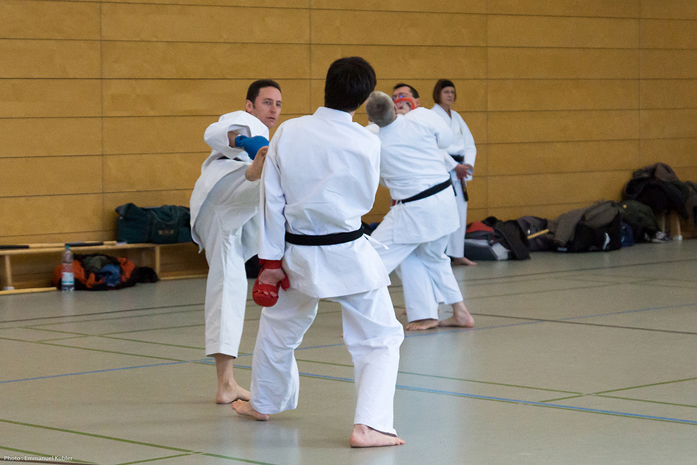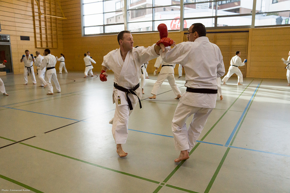 Nous avons continué l’harmonisation des katas avancés et avons travaillé un exercice de Yakusoku Kumite (enchaînement de combat codifé pratiqué à deux).