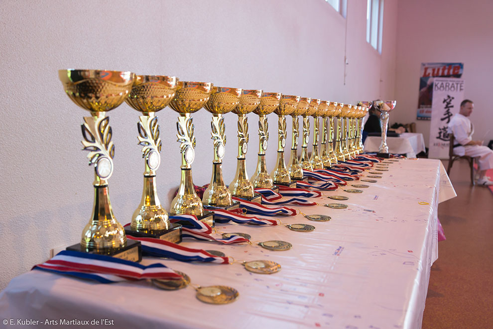 Les trophées, remis par les juges sous la direction du président des Arts Martiaux de l’Est Michel BAYSANG, ont fait bien des heureux qui se réjouissaient déjà pour le prochain tournoi.